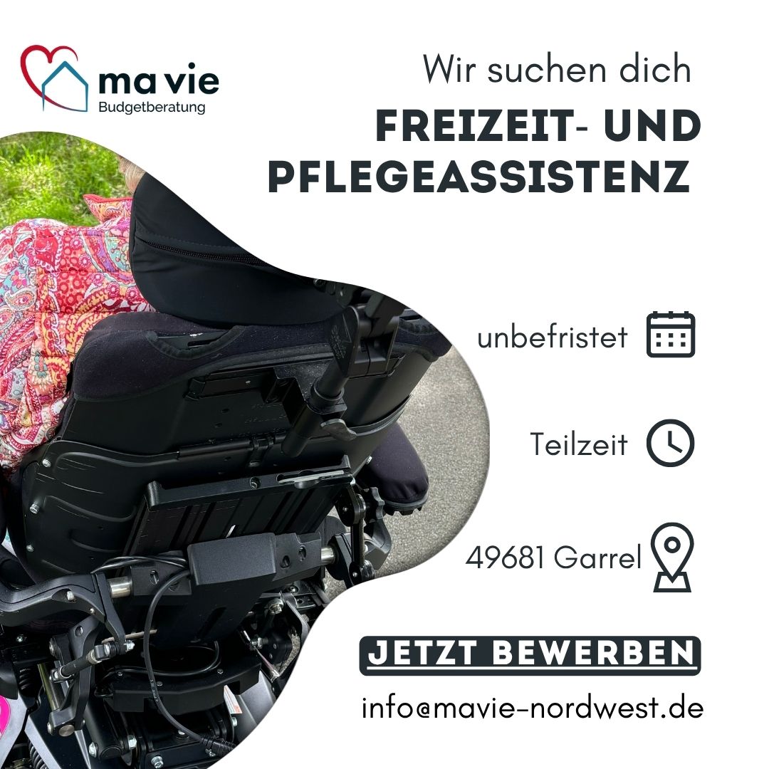 Beruflicher Tapetenwechsel gefällig? Dann schau doch mal rein! Zur Erweiterung meines Teams suche ich freundliche Unterstützung im Alltag. Aufgrund einer Behinderung sitze ich schon von klein auf im Rollstuhl, bin vom Kopf her aber fit und lasse mir den Spaß am Leben nicht verderben. An vier Tagen in der Woche arbeite ich vormittags im Büro. Für die restliche Zeit bin ich gerade dabei, mir ein Assistenzteam aufzubauen, damit ich mein Leben so gestalten kann, wie ich es mir wünsche. Bisher haben meine Eltern mir viel in meinem Alltag und Leben zur Seite gestanden. Doch auch wenn ich im Rollstuhl sitze, wünsche ich mir, ein eigenständiges und von meinen Eltern unabhängiges Leben zu führen, damit auch sie ihr Leben wieder freier gestalten können. Und das kann ich mit dir an meiner Seite! Du unternimmst auch gerne Tagesausflüge und erkundest gern schöne Orte der Umgebung? Du unternimmst gerne Radtouren? Du kochst und backst gerne und probierst auch gern neue Rezepte aus? Du hast Freude an Aufgaben der Haushaltsführung wie Wäsche waschen, Wohnung sauber halten? Du liest, genau wie ich, gerne Bücher und gehst gern auf Buchmessen und in die Bücherei? Du bist auch ein kreativer Kopf und gestaltest gerne? Du hast keine Tierhaarallergie und würdest mich vielleicht sogar gerne in der Versorgung von unserem kleinen Hund Timmi unterstützen? Und/oder du kennst dich in der Pflege aus und hättest Freude daran, mir in meiner pflegerischen Versorgung zur Seite zu stehen? Dann zögere nicht und melde dich bei mir! Bei mir erwartet dich: • ein wertschätzendes, freundliches Arbeitsumfeld • eine Teilzeitarbeit mit +/- 80 Stunden im Monat vorrangig nachmittags, abends und an den Wochenenden • faire Bezahlung nach TVÖD • 28 Tage Urlaub/Jahr • monatlich ein Tankgutschein (50,- €) Ich freue mich schon sehr darauf dich kennenzulernen und mit deiner Hilfe, ein Stück mehr Freiheit in mein Leben zu bringen!