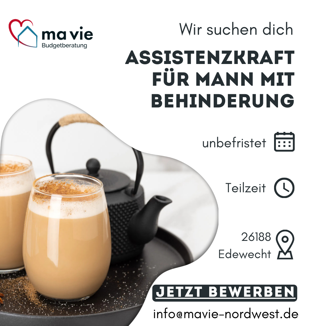 Für einen 35-jährigen Kunden mit Angelman-Syndrom und Pflegegrad 5 suchen wir eine pädagogische Assistenz zur Betreuung und Begleitung im Alltag im Privathaushalt. Geboten wird: • TZ-Stelle mit 30 Std./Woche • Arbeitszeiten: Früh- und Spätdienst (7-15 Uhr und 15-23 Uhr) • Bezahlung nach TVöD P Tabelle für Pflege; ungelernte Kräfte 16,15€ Einstiegsgehalt • 28 Tage Urlaub (bezogen auf eine 5 Tage Woche) • Zuschläge • Sonderzahlungen • Freundliches Arbeitsumfeld mit viel Gestaltungsfreiheit Erwartet wird: • Empathie • Geduld • Erfahrung im Umgang mit Menschen mit Behinderung • Gute Deutschkenntnisse Herr M. ist ein sehr fröhlicher Mensch, der seine Chai Latte und Kuscheltiere liebt, gerne bastelt und mit Begeisterung die Eichhörnchen durch sein Küchenfenster beobachtet. Aufgrund seiner Behinderung ist sein Leben von vielen Ängsten geprägt und er benötigt häufig Bestätigung/fragt immer wieder die gleichen Dinge. Wenn Sie sich vorstellen können, Herrn M. in seinem Alltag zu begleiten, schreiben Sie uns gerne unter dem Betreff „Pädagogische Assistenzkraft gesucht (m/w/d) - Edewecht – MA“.